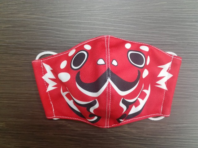 [青森ねぶた祭 当店オリジナル金魚ねぶたシリーズ]手作り布マスク THE金魚ねぶた 金魚ねぶたの顔がそのままマスクに!楽しい当店のオリジナルマスクです! ◎サイズ/大きめ、普通、小さめ (全て手づくりのため、5〜8ミリの誤差が生じます。ご了承ください) ◎幼稚園児童サイズ〜小学校低学年向けの小さいサイズもお応えします。備考欄にてご希望ください。 【金魚ねぶたについて】 金魚ねぶたは青森県津軽地方を中心に、夏祭り時期になると街中で飾られる和紙やビニールで作られた金魚の提灯(玩具)です。 弘前藩の保護下で飼育されていた「津軽錦」がモデルと言われています。幸せを運ぶ縁起物です。 ・昇華転写でのフルカラープリント製品です。表面のみ昇華プリントになります。裏地にはプリントしておりません。 ・表地、裏地ともにポリエステル生地です。化繊の含有率が高いため、アトピーやお肌の弱い方は仕様にご注意ください。 ・昇華プリントのため、熱をかける際に再昇華が起こることでデザインにブレやムラ、擦れ等がある場合があります。 ・耳かけ部分のゴムについて、平ゴム・丸ゴム等、予告なく種類が変わる場合がございます。ご了承ください。 ・マスク製品は個包装を空けたもの、着用されたものについて返品・交換不可です。 お洗濯について ・手洗い、洗濯機での丸洗い対応です。 ・手洗い、または洗濯ネットに入れてお洗濯することをお勧めします。 ・洗濯時には柔軟剤のご使用をお避けください。 ・初回のお洗濯時、移染する可能性がありますので、白いものとは分けて洗ってください。 ・生地の性質上、多少縮むことがあります。