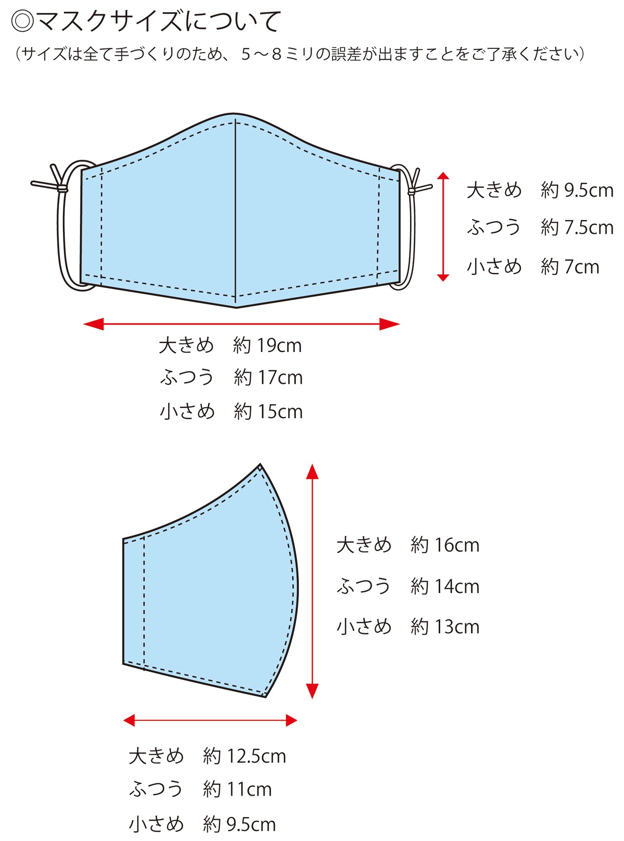 サイズ/大きめ、ふつう、小さめ(全て手づくりのため、5〜8ミリの誤差があります)