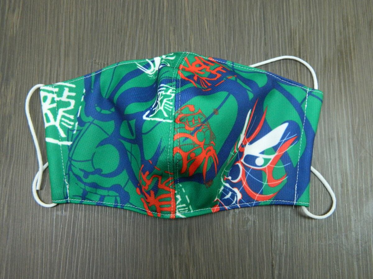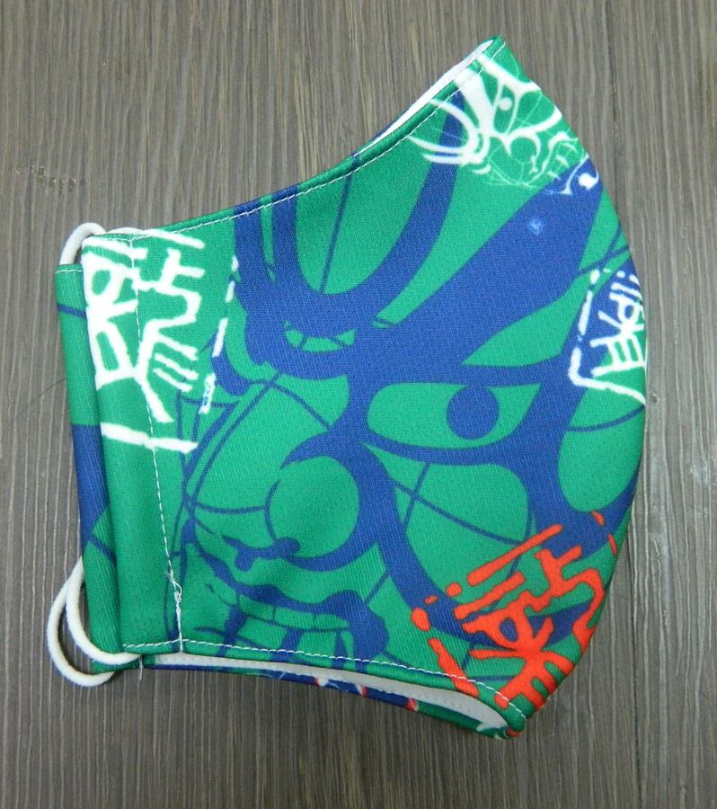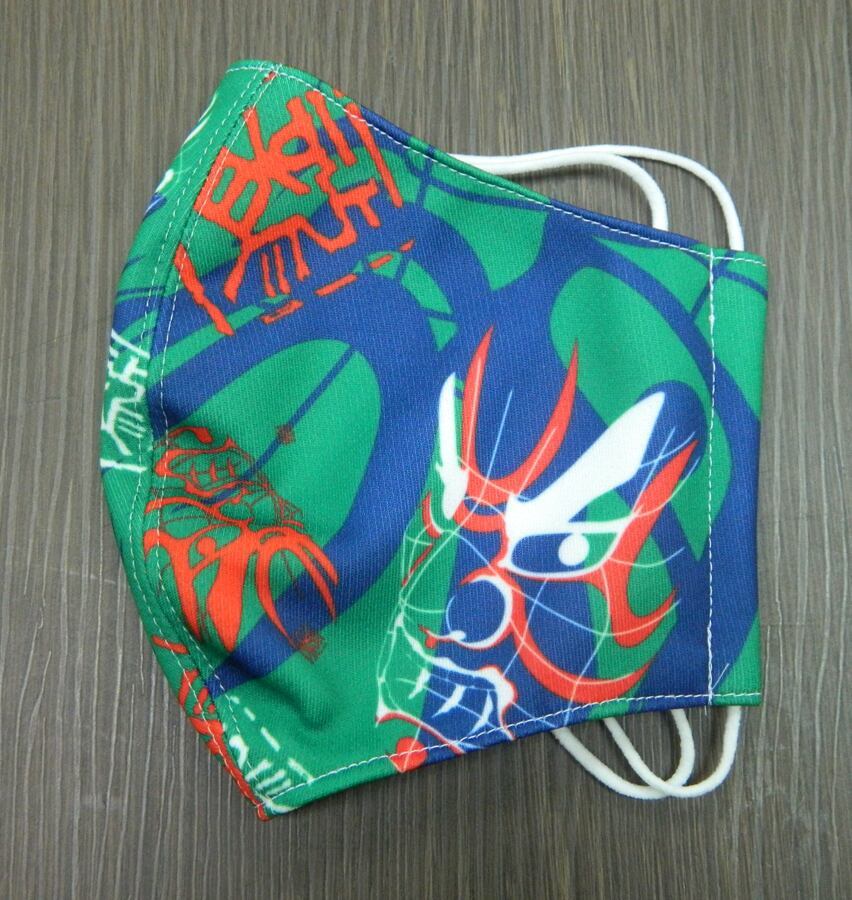 手作り布マスク 隈取 みどり色