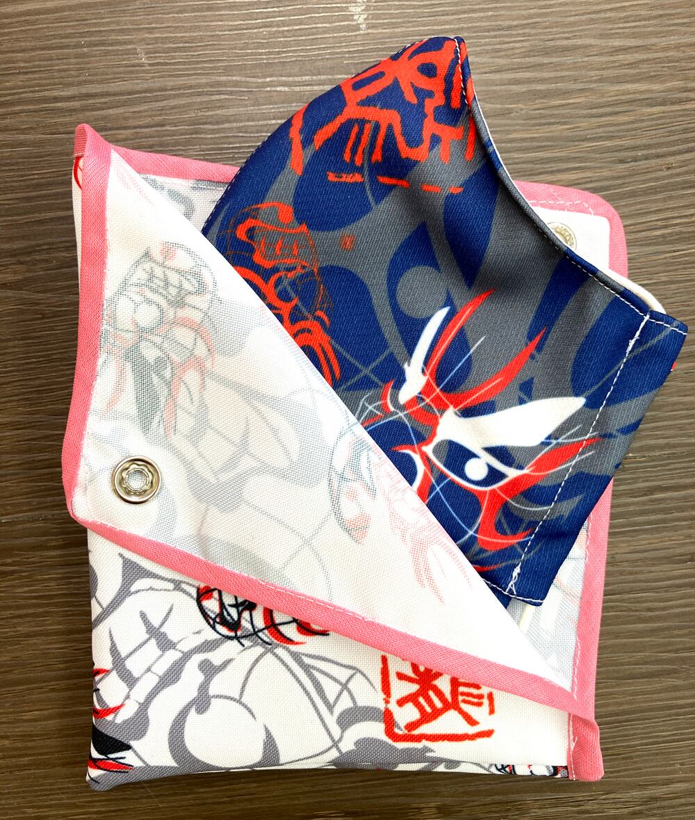 青森ねぶた祭 ねぶた師立田龍宝さんの隈取柄生地の布製マスクケースです。