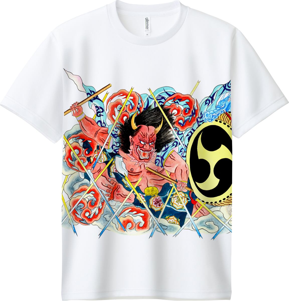 夏の祭を盛り上げる鮮やかなデザインプリントTシャツです。