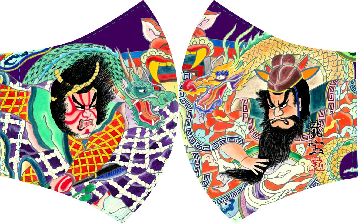 青森ねぶた祭 ねぶた師立田龍宝 下絵作品シリーズ手作り布マスク