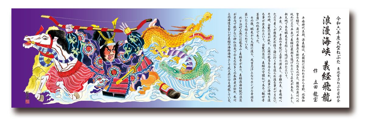 ねぶた師立田龍宝さん令和6年度新作「浪漫海峡義経飛龍」のデザインクールスカーフです。